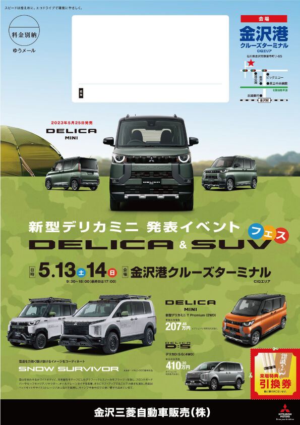 さて次は5月13日・14日にある金沢三菱のイベント「DELICA&SUVフェス」です